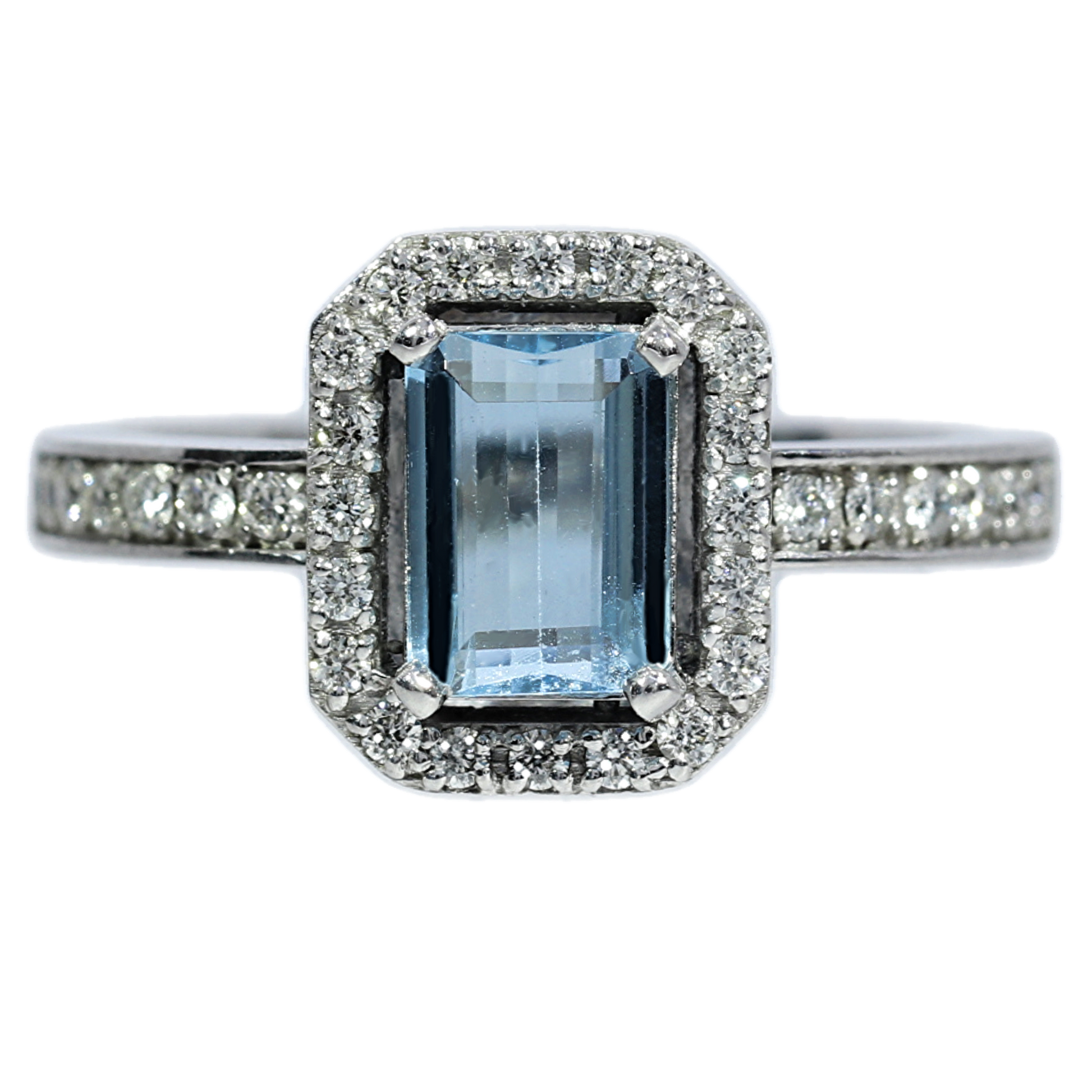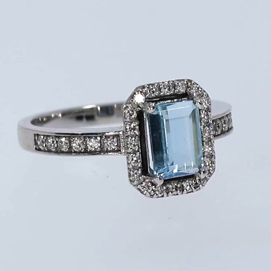 Aquamarine and Diamond Ring - 18kt White Gold