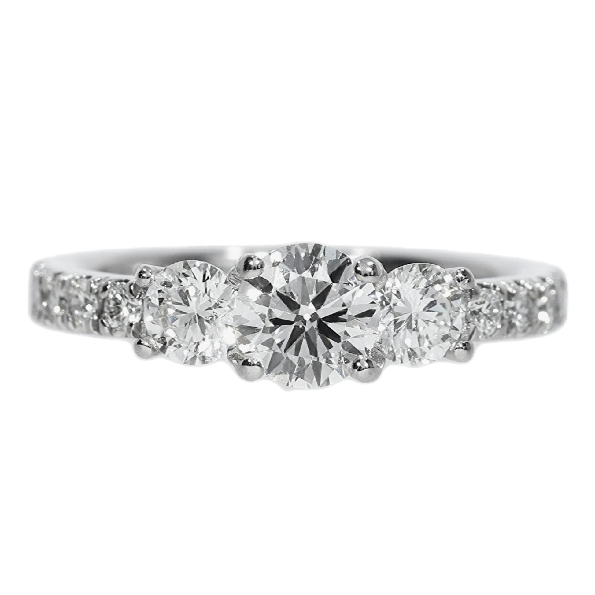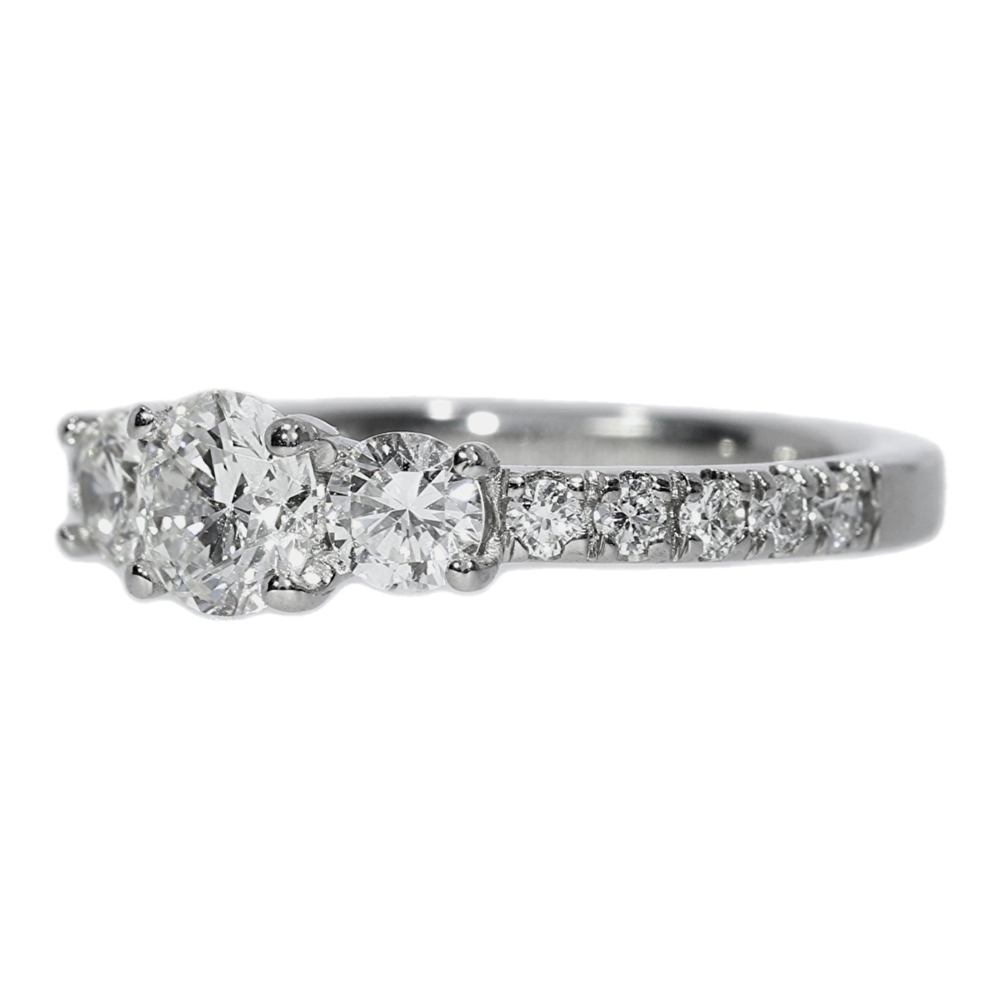 This exquisite brilliant-cut natural diamond ring features a trio of dazzling stones set in a sleek band, perfect for adding a touch of elegance to any occasion. The brilliance of the diamonds is enhanced by the polished finish, making it a perfect choice for engagement or a special occasion.