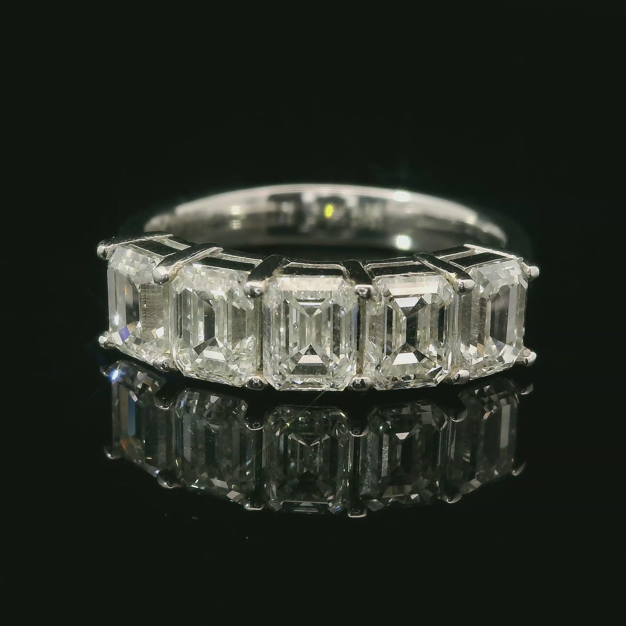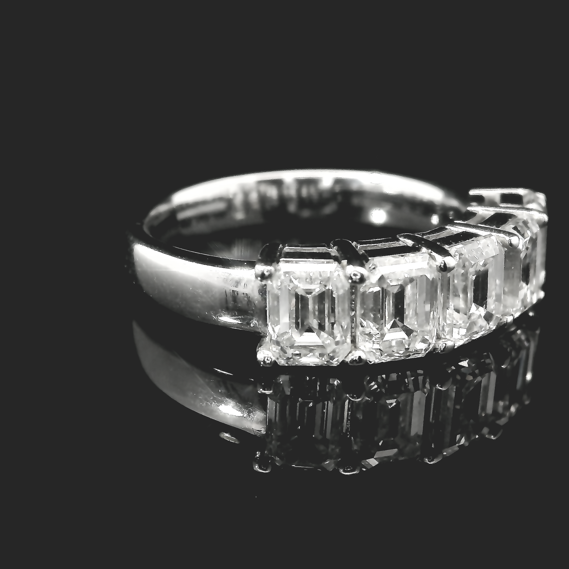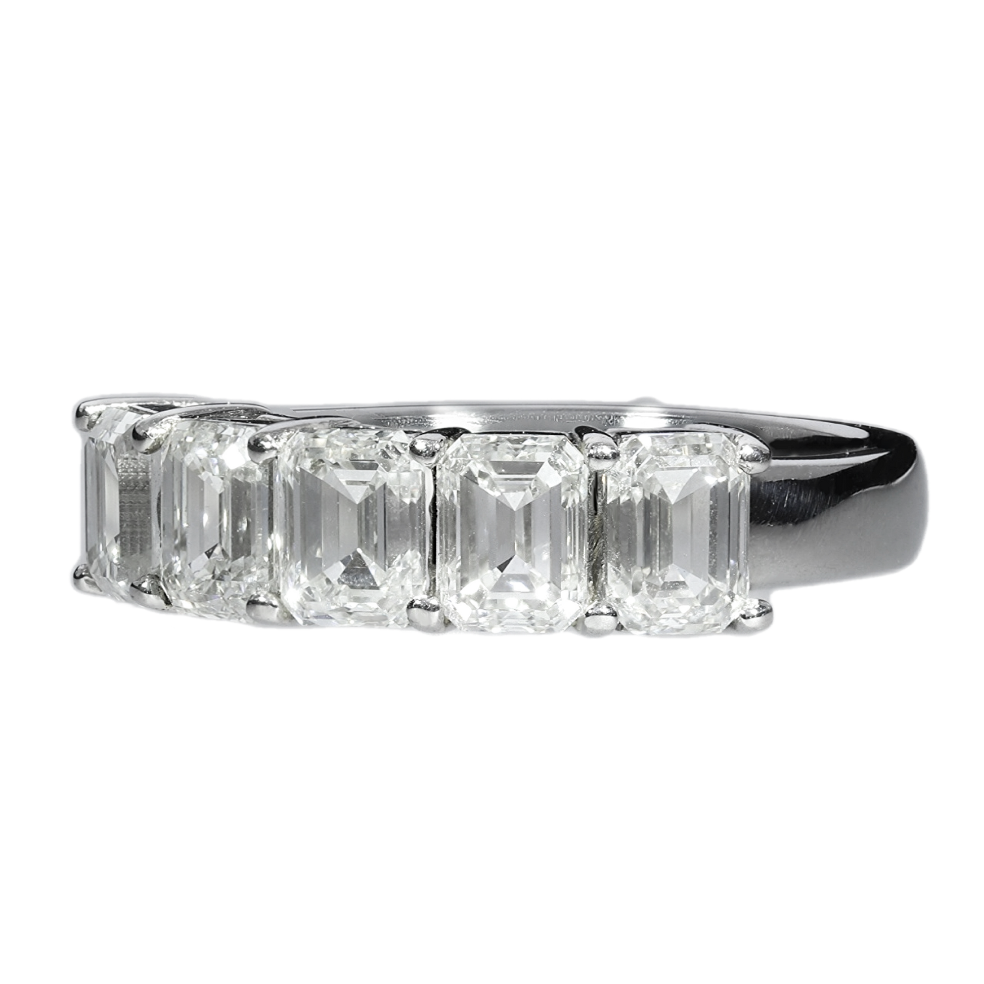 This half-ribbon ring with 5 natural emerald cut diamonds 2.51 ct. is the perfect combination of elegance and sophistication. This fine band ring is perfect for engagements or special occasions.