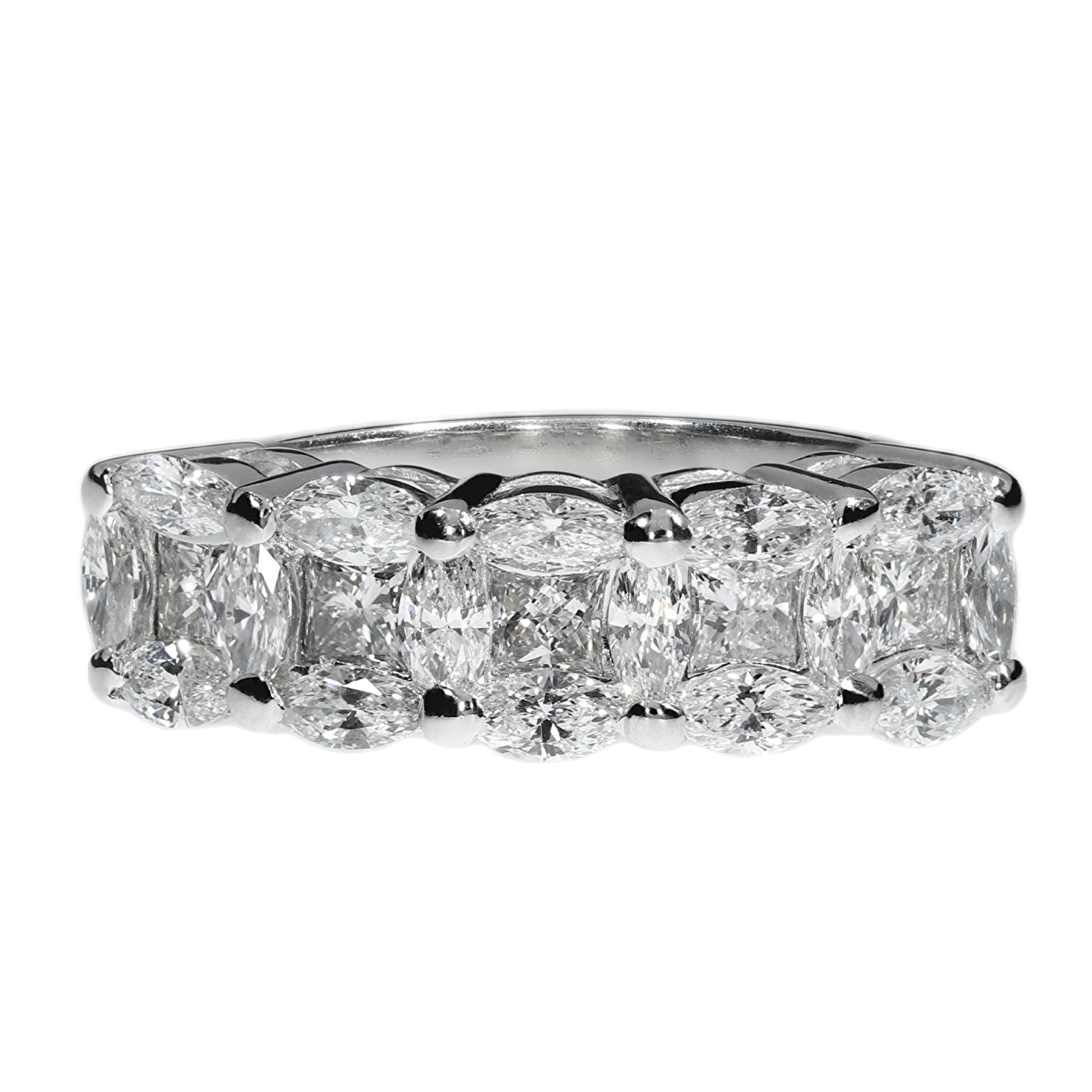 This exquisite diamond ring captures the essence of elegance and sophistication, a half-ribbon marchioness-cut and princess natural sparkling diamonds, that enhances its timeless beauty. Perfect for engagements or special occasions, this ring is a testament of love and style.