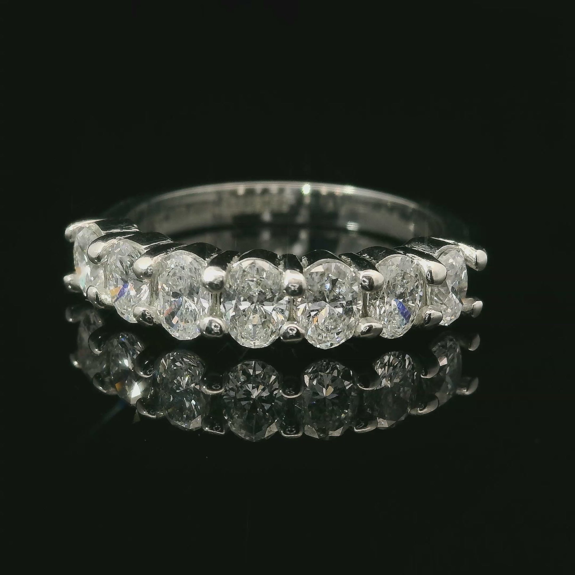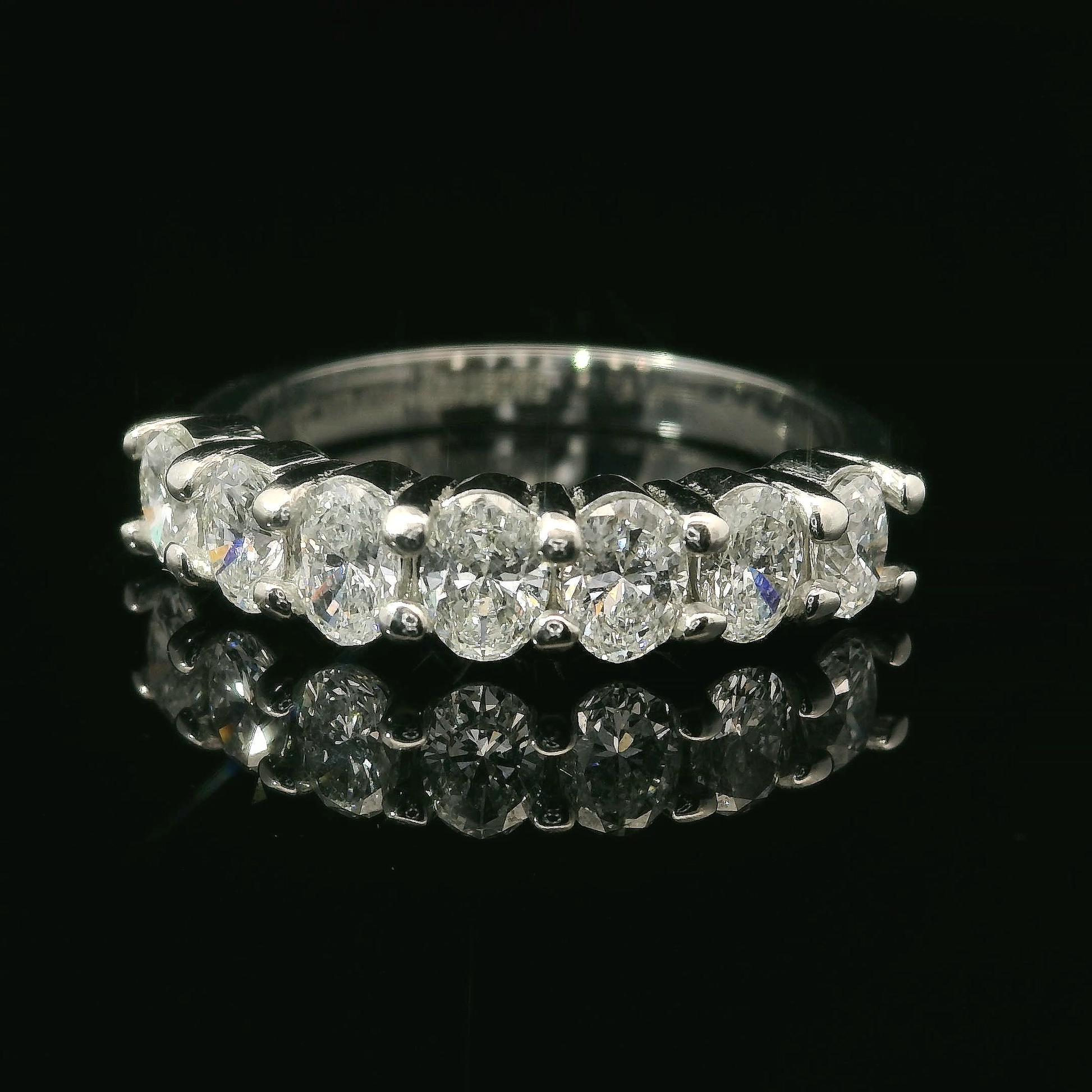 This half-ribbon oval-cut natural diamonds ring features a stunning array of vibrant stones set in a luxurious band. Perfect for special occasions or engagements, also its an addition to your jewelry collection.