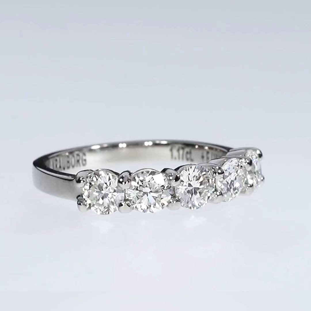 This exquisite engagement ring features a brilliant cut of five natural diamonds along its fine band. This ring elevates the beauty of its design, creating a captivating piece of jewelry that it is perfect for any special occasion or a unique addition to your collection.