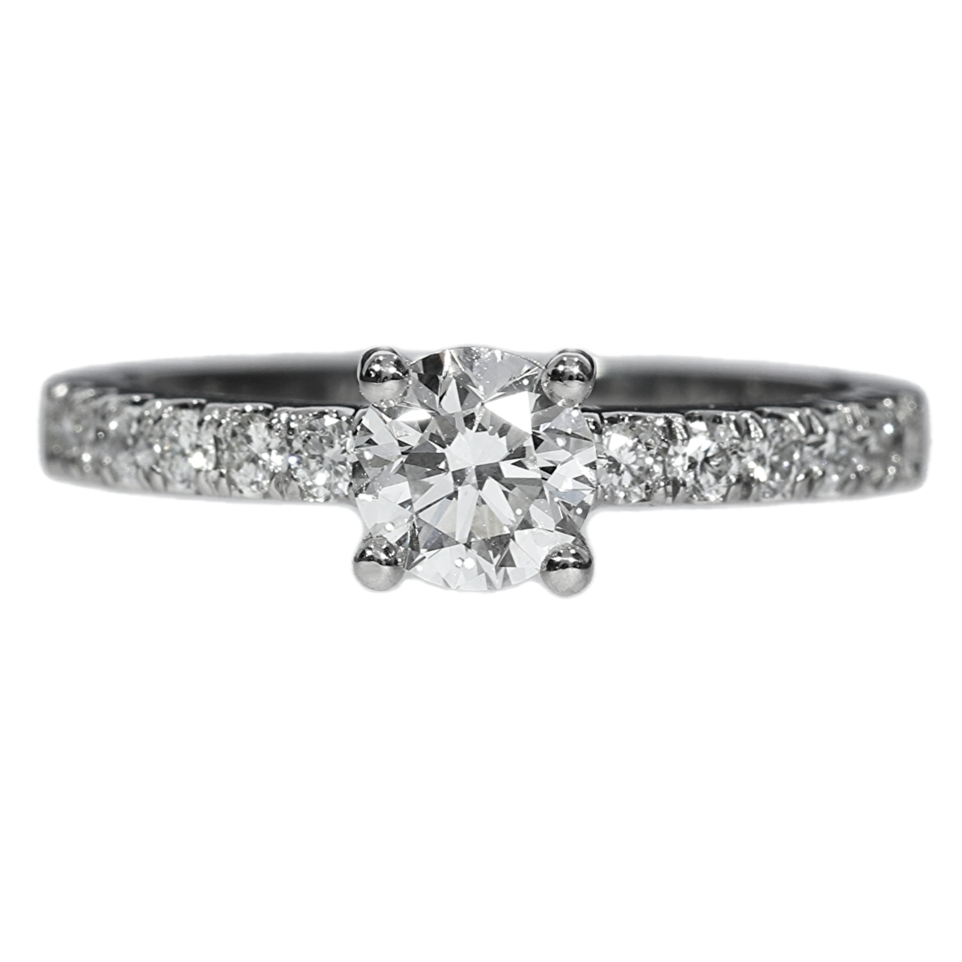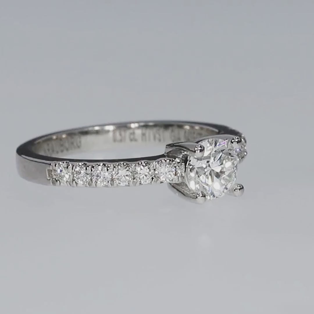 This exquisite diamond ring captures the essence of timeless elegance. Featuring a brilliant round-cut diamond at its center, the ring is adorned with a series of smaller diamonds along the band, creating a dazzling display of sparker and sophistication to enduring love.