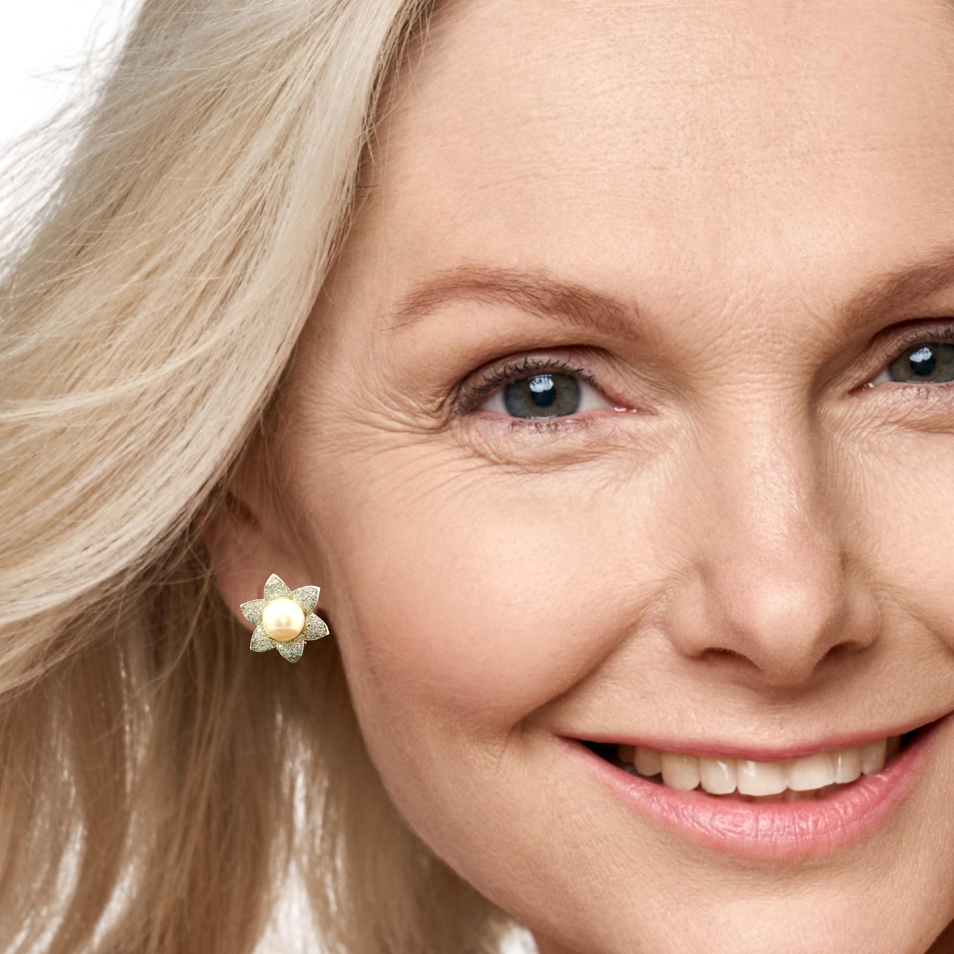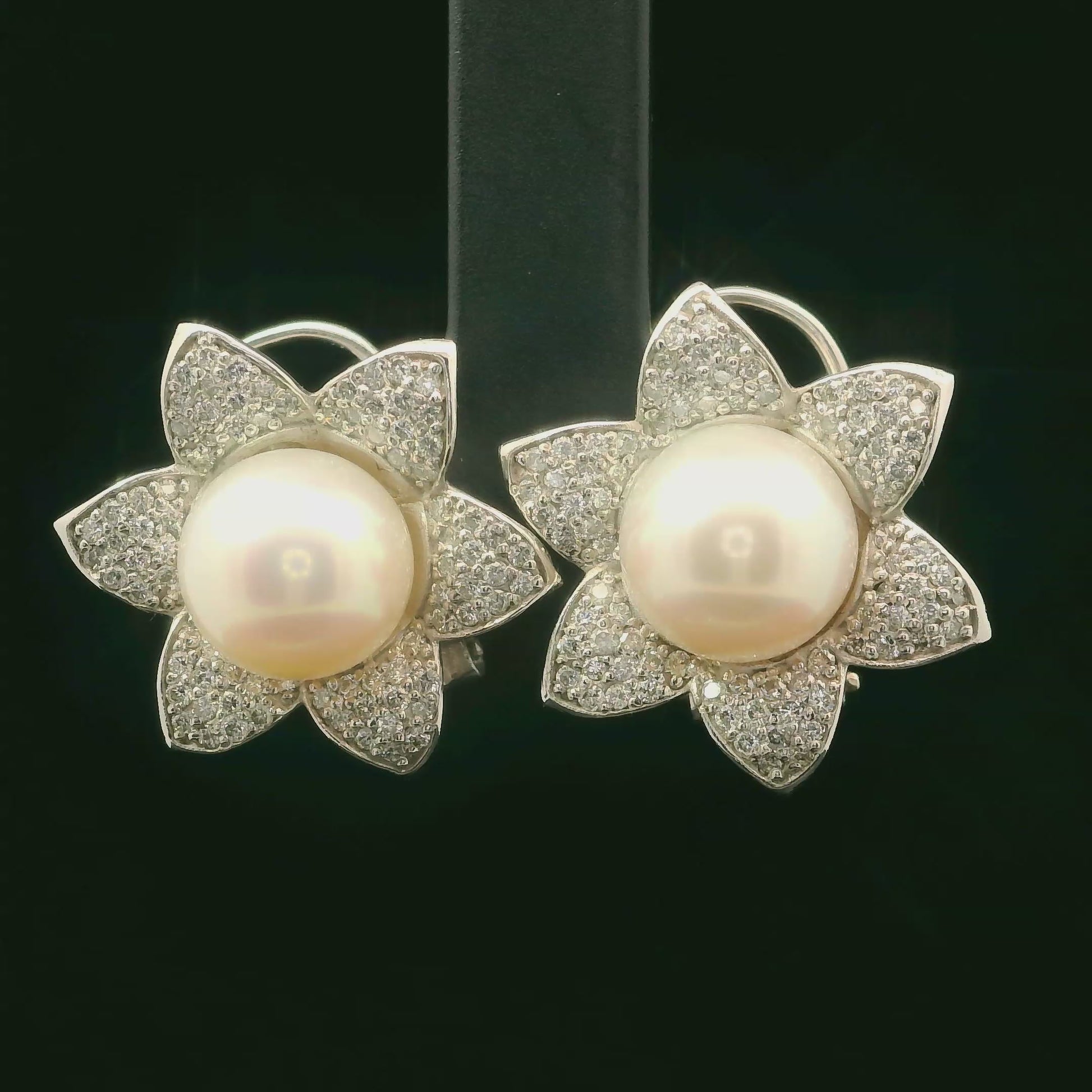 These exquisite brilliant-cut diamond pearl earrings are elegant and sophisticated piece of jewelry, to elevate your casual or formal outfit.