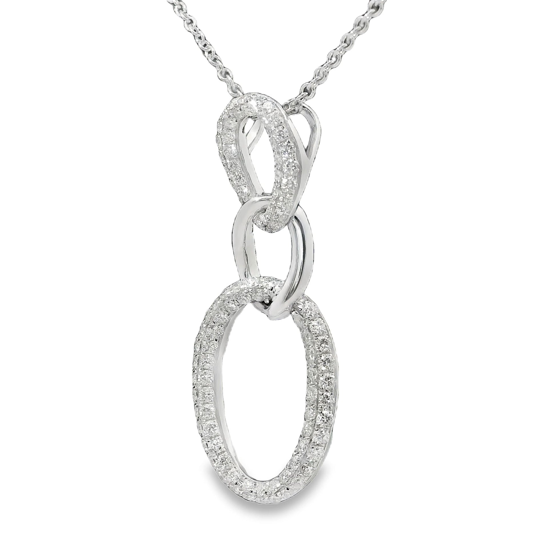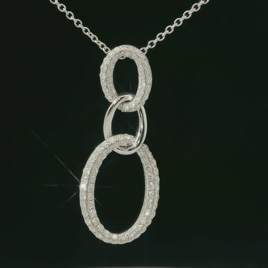 This exquisite pendant necklace features a trio of interlocking circles, each encrusted with shimmering diamonds. The elegant design is perfect for adding a touch of sophistication to any outfit, making it an ideal choice for both everyday wear and special occasions.