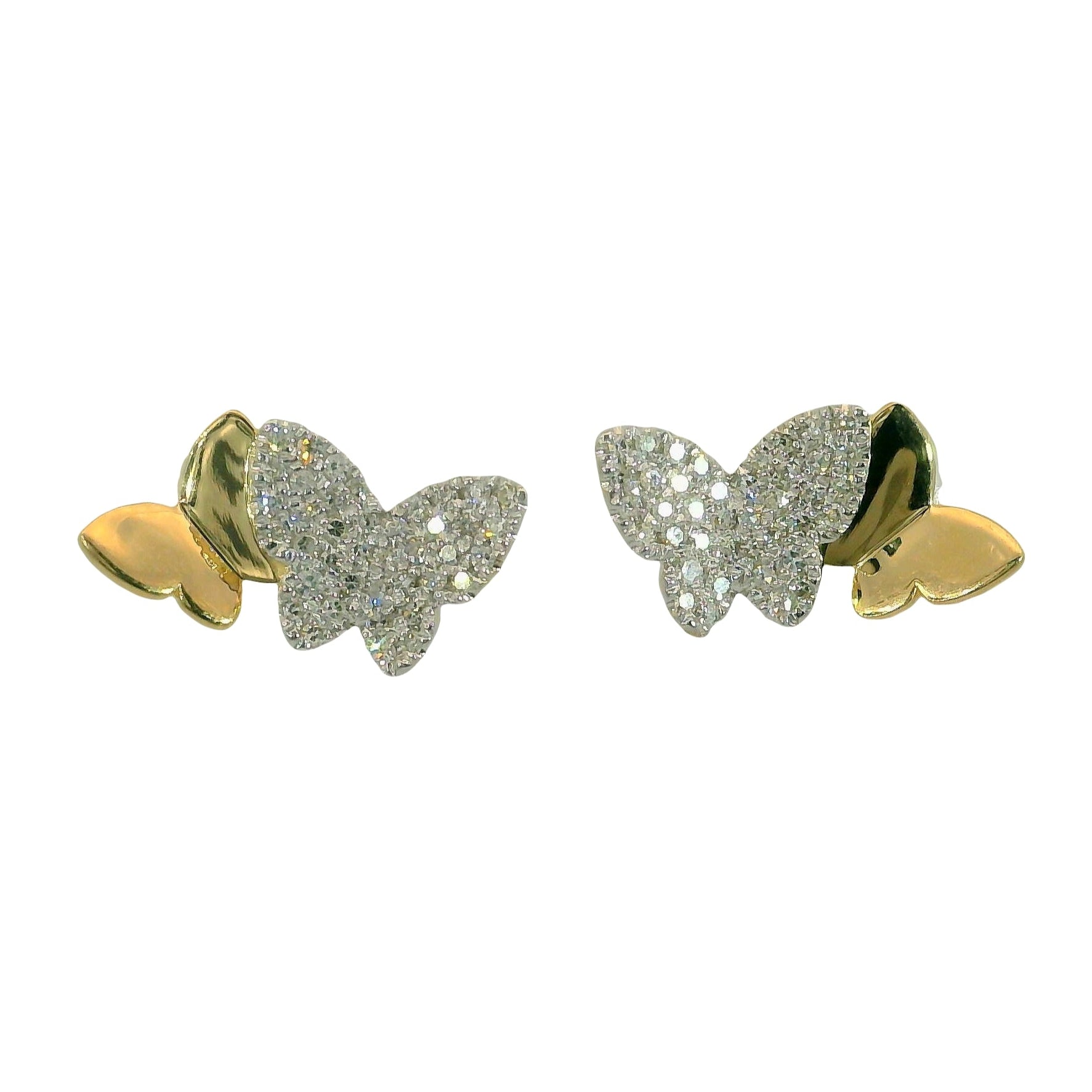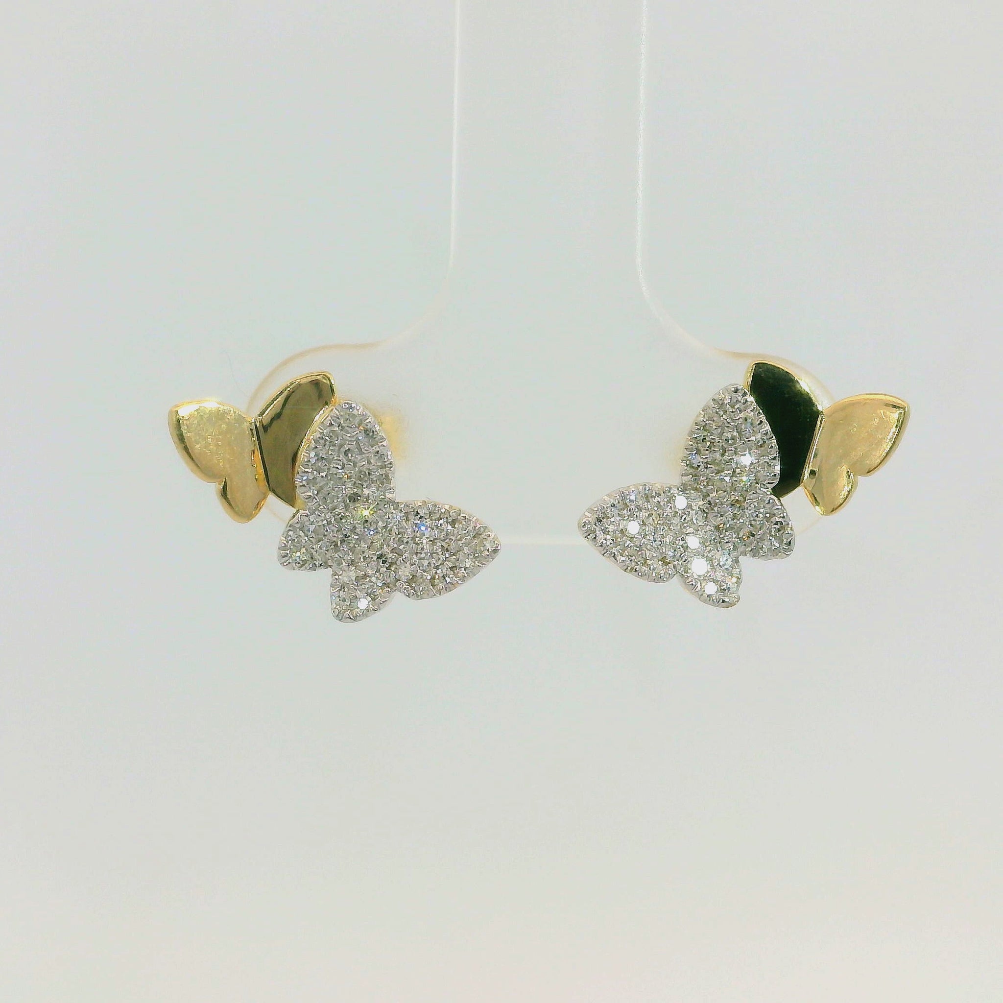 Natural Diamond Butterfly Earrings - 14kt Yellow Gold