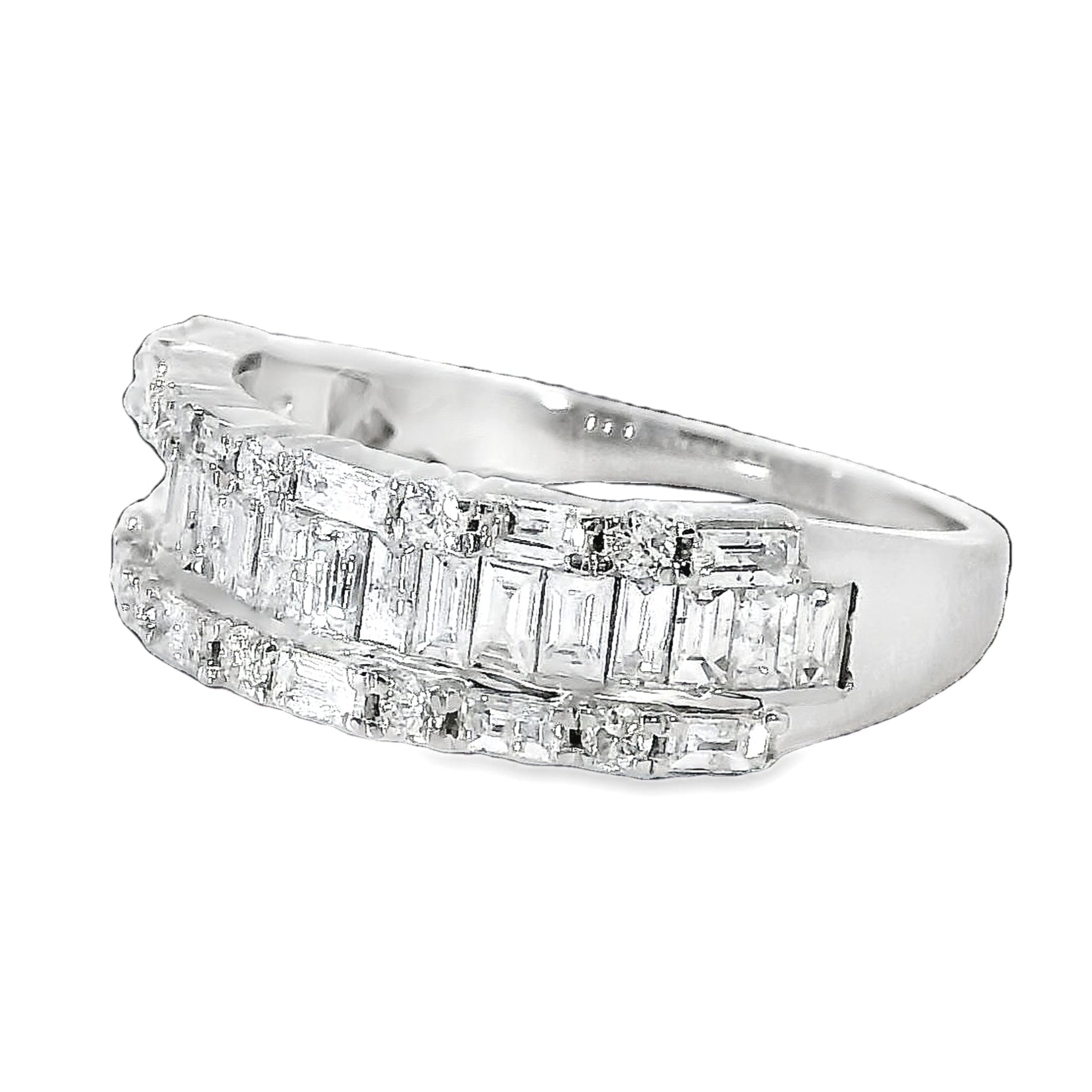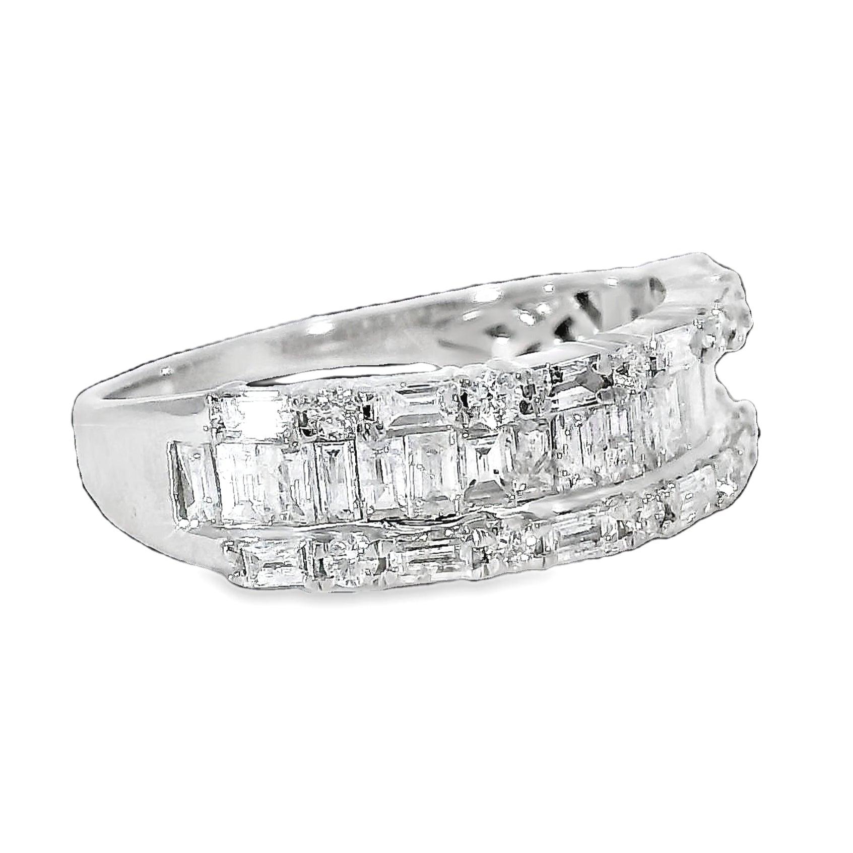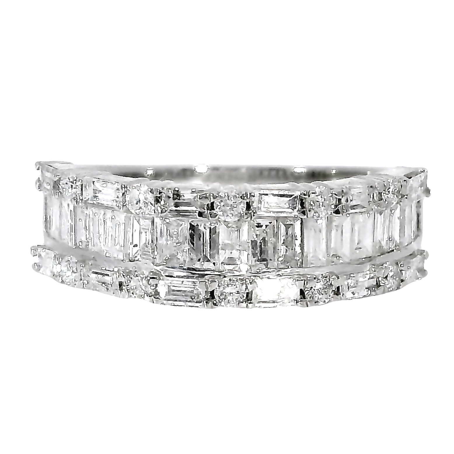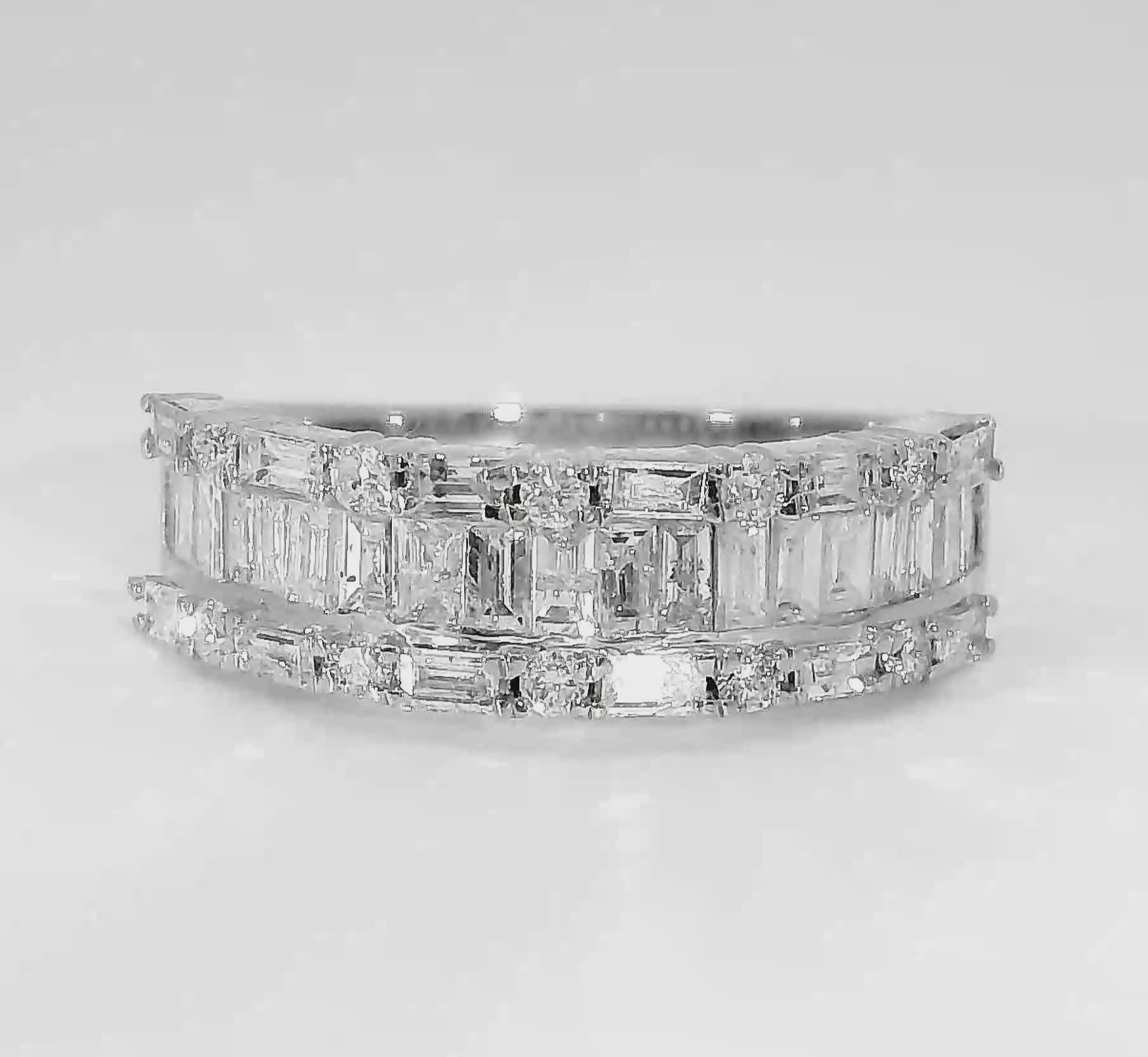 This stunning diamond band ring features a unique design with alternating emerald-cut and round diamonds, creating a captivating sparkle. Crafted from high-quality materials, it is perfect for special occasions or as a timeless addition to your jewelry collection.