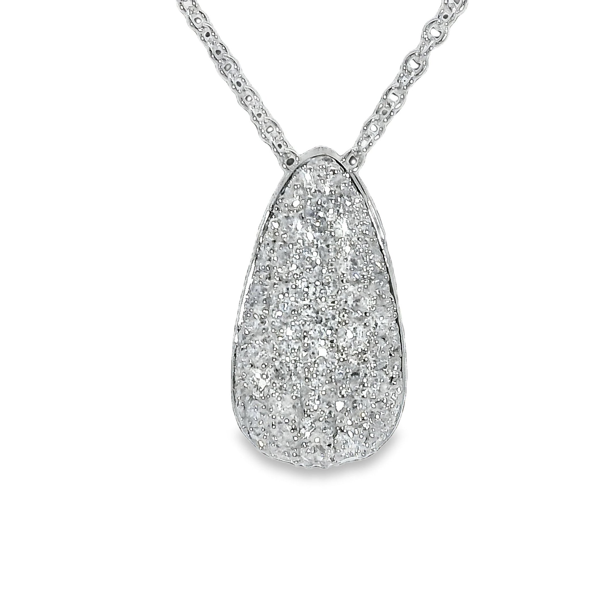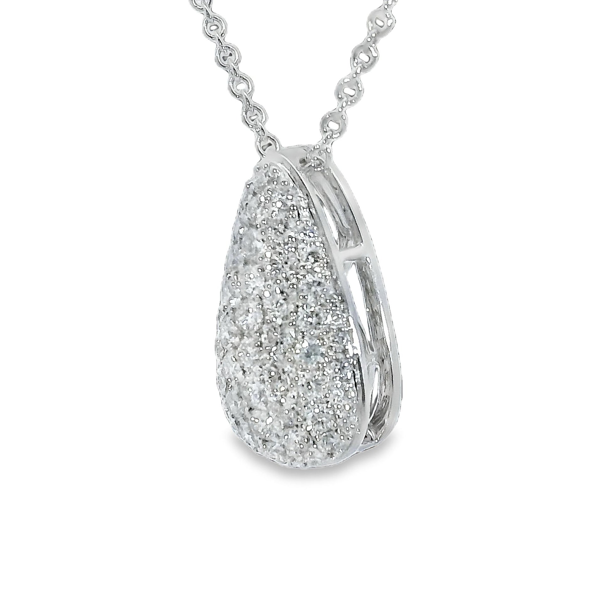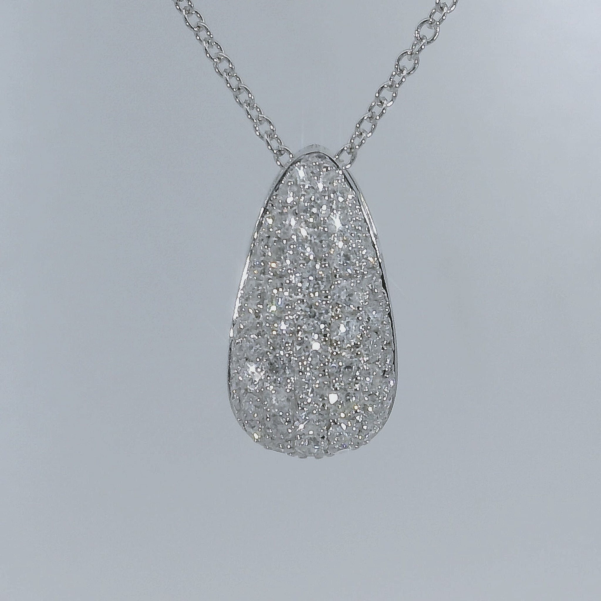 This exquisite diamond pendant necklace is a true masterpiece of elegance and sophistication. The teardrop-shaped pendant is encrusted with dazzling diamonds that catch the light beautifully, making it a perfect accessory for any special occasion. The delicate chain adds a touch of grace, ensuring that this piece will be a cherished addition to any jewelry collection.