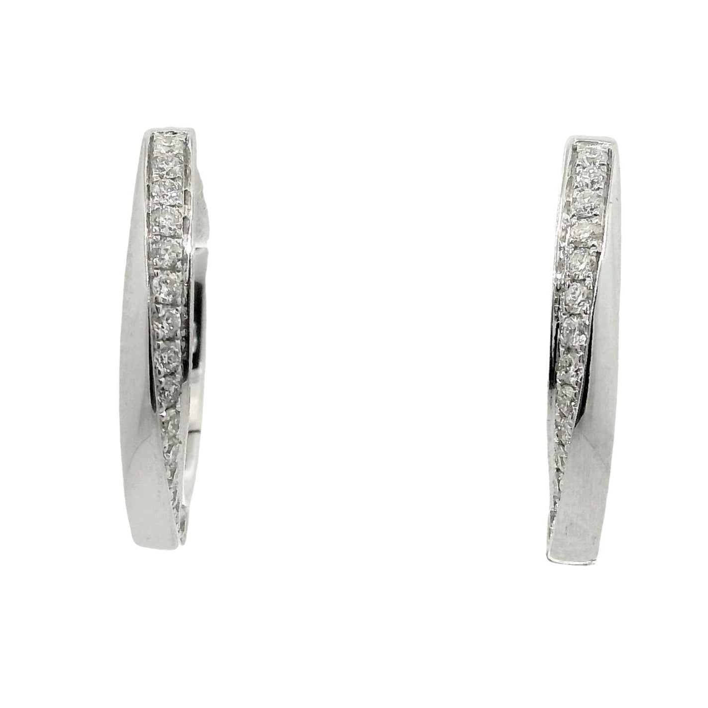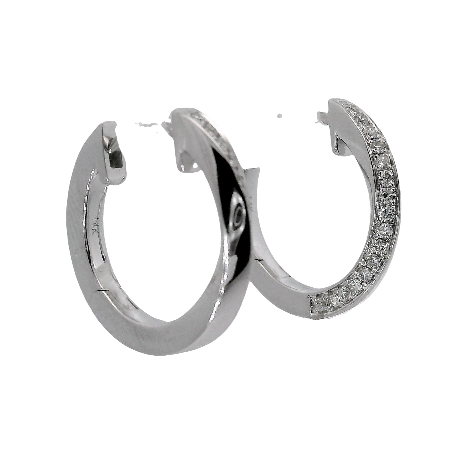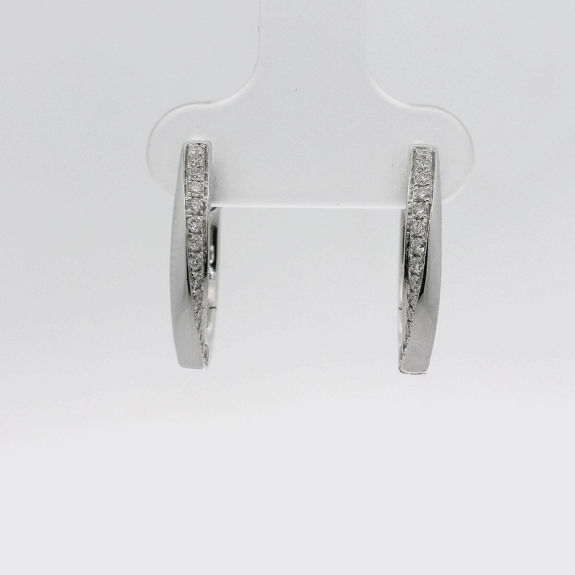 Adorn yourself with these sophisticated hoop earrings, crafted in gleaming white gold. The earrings are embellished with sparkling round cut diamonds, adding a touch of timeless elegance and brilliance to your style.