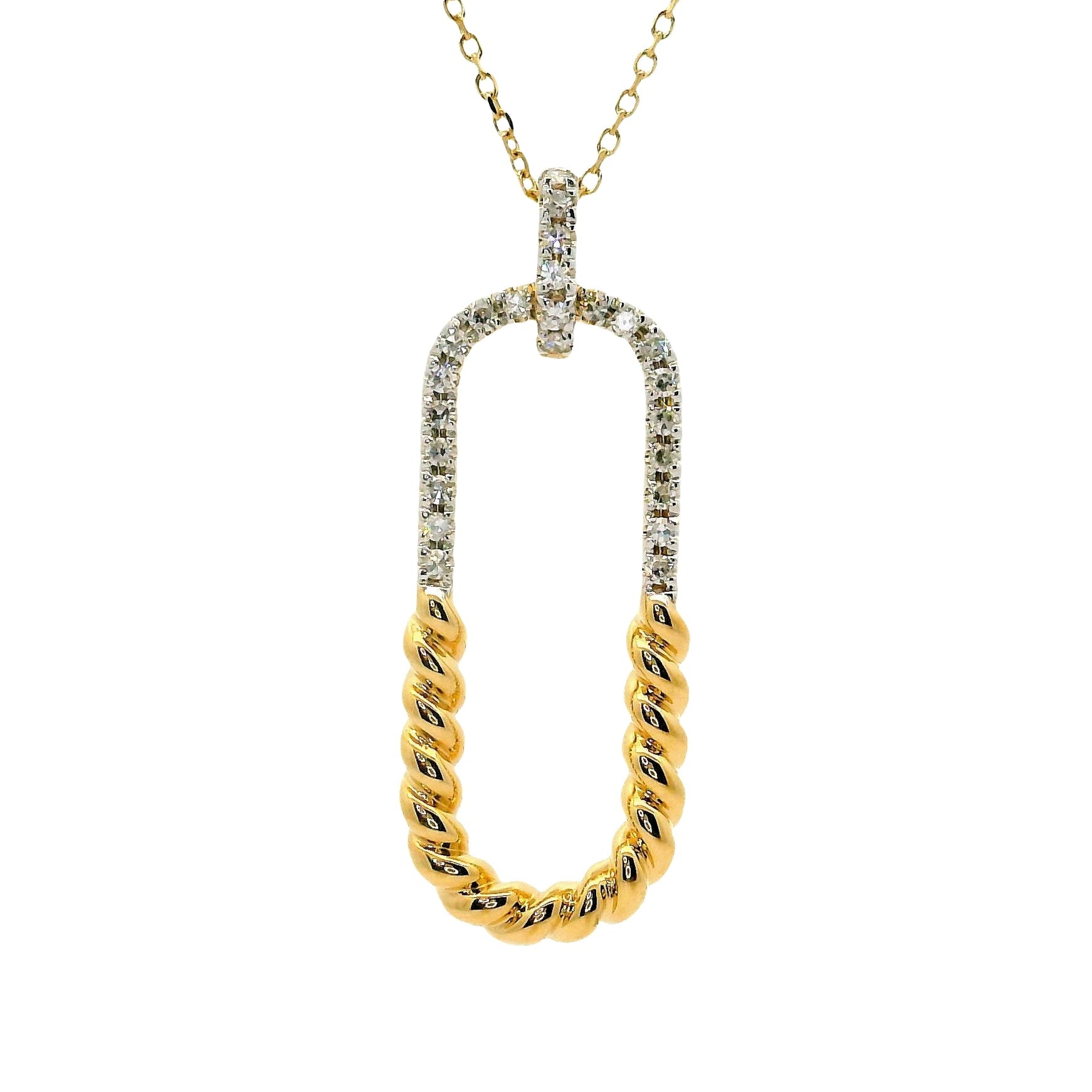 Natural Diamonds Paper Clip Pendant - 14kt Yellow Gold