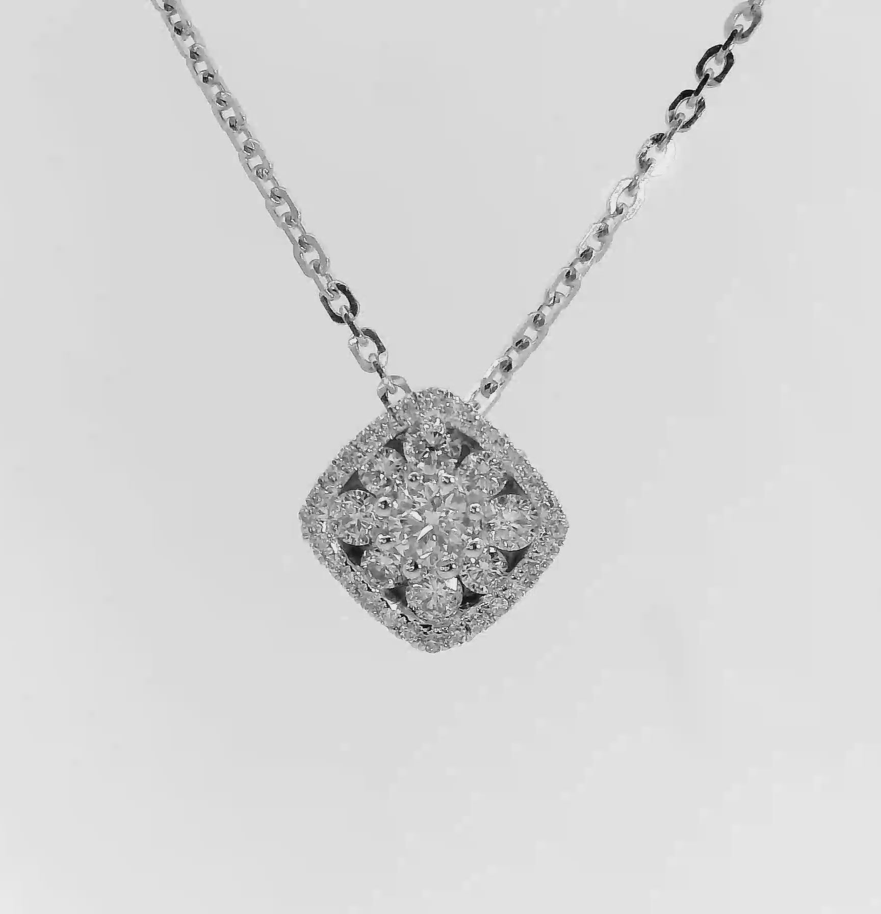 This stunning diamond pendant necklace features a beautifully crafted design that captures the light with every movement. The intricate detailing and sparkling stones make it a perfect accessory for any occasion, whether it's a formal event or a casual outing. Elevate your jewelry collection with this exquisite piece that embodies elegance and sophistication.